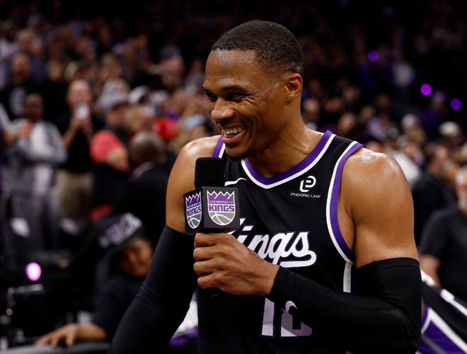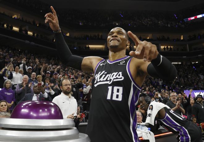 在那之后,威少就一直保持着顶级的个人表现,甚至有4个赛季场均篮板上双,21年在奇才队,威少场均可以抢下11.5个篮板,完全是能和中锋媲美的存在了。今年威少加盟了国王队,他仍然可以拿到场均15分7篮板5助攻的不俗数据,在今天对阵勇士队的比赛里,威少更是砍下了23分16篮板10助攻的劲爆三双。这样一来,他的生涯篮板数也达到了8734个,正式超越基德,成为控卫历史篮板王。
